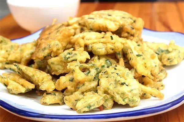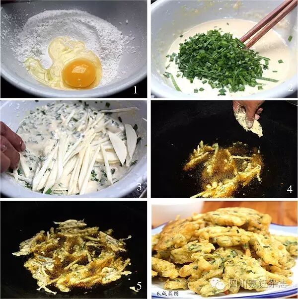 此菜虽然名为韭菜粑粑,却是以面粉、红苕丝作为主要原料。由于在调制粉糊时加了一些韭菜末,故做好的成品带有一股浓浓的蔬香。
