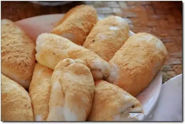 裹着黄豆面和白糖的糍粑,来一口~