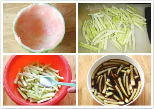 (小贴士:用盐腌制过的西瓜皮就没有青草味了。)