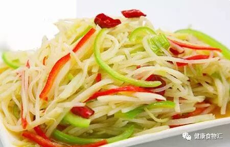 做法:土豆、胡萝卜、黄瓜切丝,土豆切丝后泡入清水中,防止变黑。锅中水烧开后,放入土豆丝焯烫。