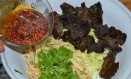 2、这个碗汁酸甜适口 和适合高血压,油的量也比较少,虽然有油泼辣子但是只是辣椒油不辣而且芝麻也增香。