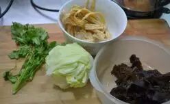 1、木耳炒熟,腐竹烫一下就好,焯久了腐竹会烂掉