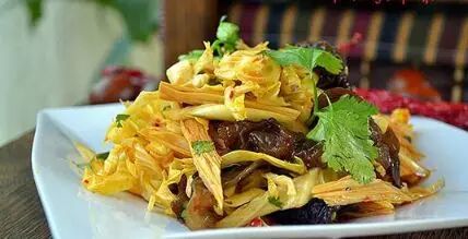 腐竹切丝,用开水烫一下就好