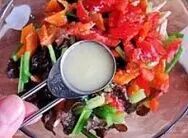 芹菜要提前焯烫。拌菜的时候,先放入其他调料让菜入味,最后加入香油拌均匀。