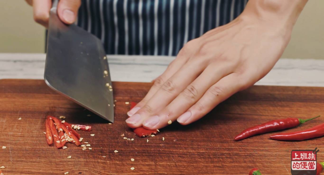 ▲这时将小米辣切丝备用;