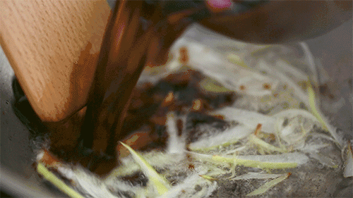 酱汁熬好后捞出香葱、香菜和香叶放凉即可,喜欢吃辣的朋友还可加些辣椒末。