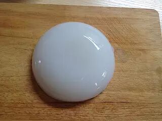 9、凉粉放凉后倒扣在熟食案板上,拍拍碗的周边和底部,使其能完整脱模