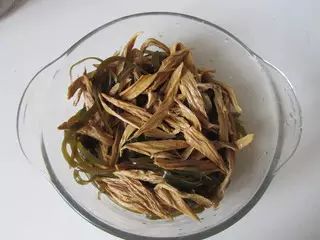 1、海带丝放入洗净后放入清水中泡上两个小时,中途换次水;