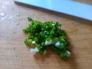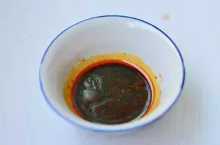 8、用辣椒酱、生抽、鸡粉、香醋调成酱汁