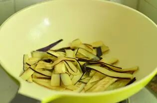 7、将番茄放入煎好的茄子碗中,并倒入蒜蓉