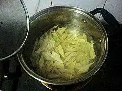 锅中水烧开加少许盐放入芹菜焯烫过凉备用