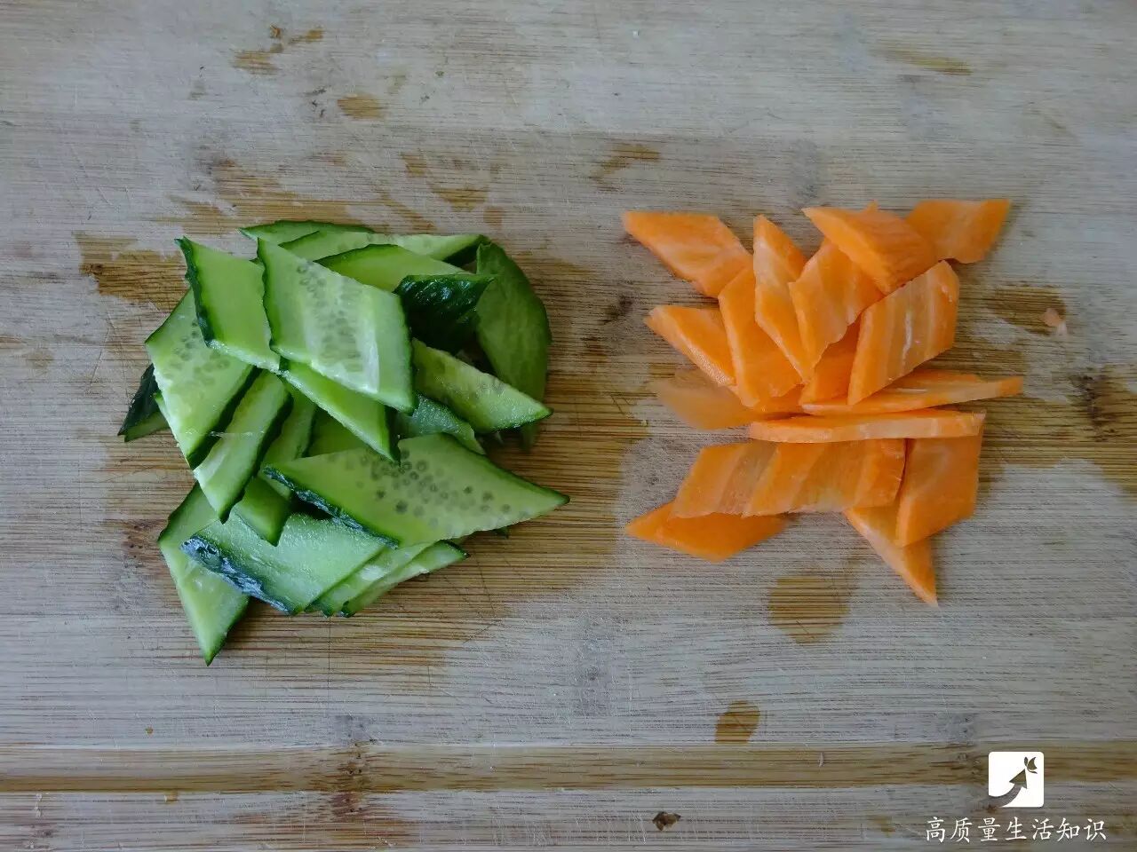 胡萝卜和黄瓜都改刀成菱形块![]()