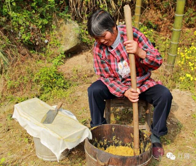 (用木棍捣碎,成红薯泥状。)