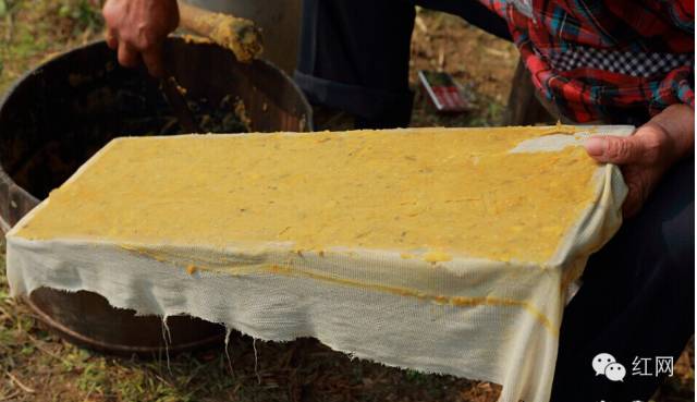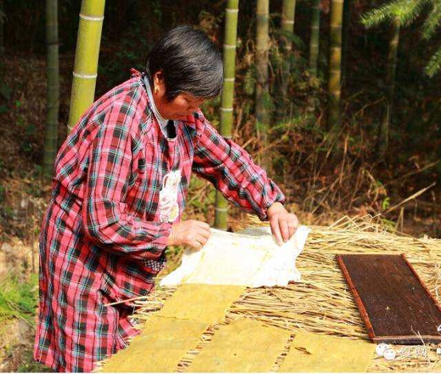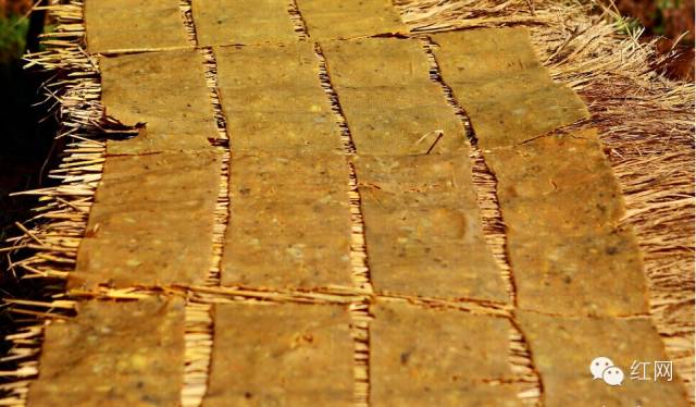 (将模板倒扣在晾晒的稻草垫上,先移走模板,再轻轻揭下白布,即大功告成。)