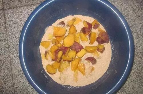 红薯有甘薯、白薯、地瓜等名称。其中皮呈浅黄色、心是蛋黄色者大家习惯称之为红心薯;另一种是皮黄白心薯,再者是红皮白心薯等品种。新鲜红薯在农家存放的时间越久、煮熟后它的香甜味越浓。制饵红薯要选择黄皮红心薯为上。因这种红心薯煮熟后含糖量高、香甜味更浓,而且还有一定的韧性与粘性。