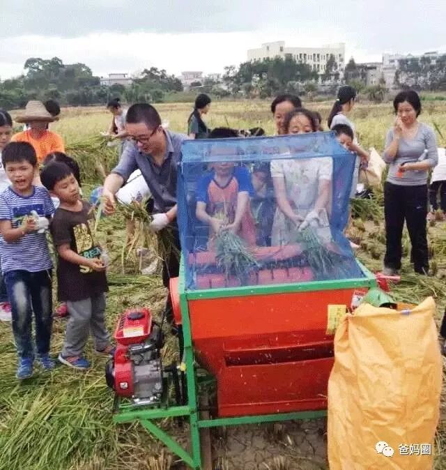机器轰隆隆的响着,小朋友们亲自来体验禾稻脱粒吧!