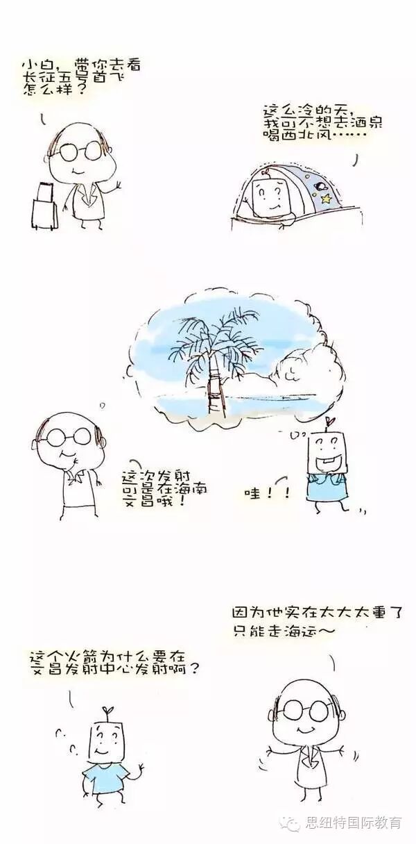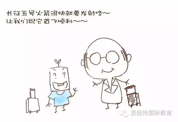 我国最大推力新一代运载火箭长征五号发射在即,漫画吉祥物“大科”、“小白”携手来到文昌发射场,等待最后的点火时刻!