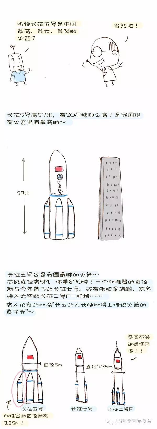 在长征火箭家族中,长征五号绝对算得上是一个大胖子,他的主要特点就是身材高、腰粗、力气大。先说身材高大,有20层楼那么高,比现役所有火箭都高。