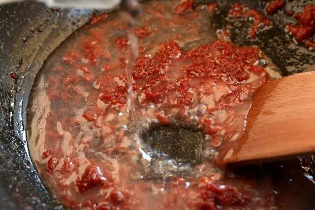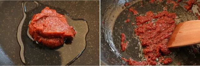 ⑩放入腐乳酱,小火慢慢炒香。![]()
