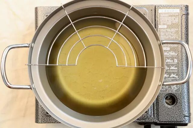 ②准备油锅,开火将油温加热至6—7成热。![]()