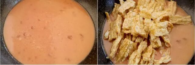 ⑫熬煮一小会放入腐竹开始炖。