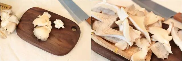 ①平菇去根,撕成条状。洗干净备用。