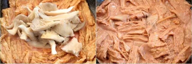 ⑬放入平菇一起炖,汁水收干即可盛出。