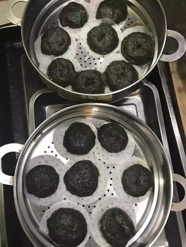 七:做好的艾叶粑粑放到柴火大锅里蒸二十分钟,就可以出锅了。