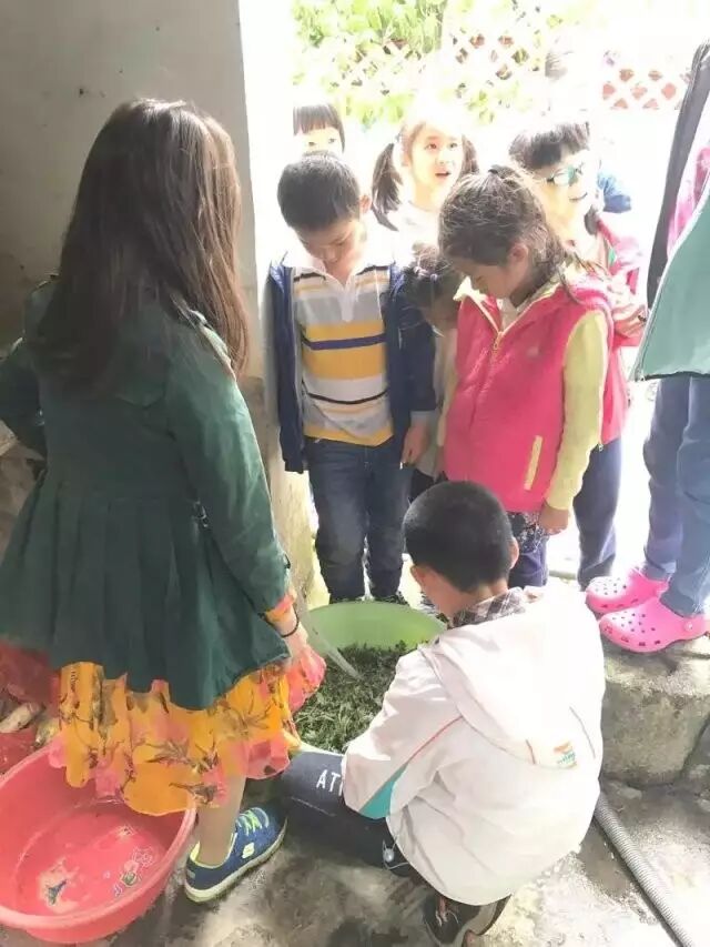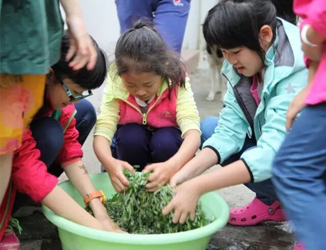 二:孩子们将认真用心挑选好的艾叶,用盆子冲洗干净。