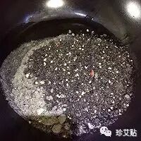 7. 馅料,将芝麻花生研磨成粉,或者就是搅拌机打成碎粒都可。用猪油来炒至香味溢出,馅料就比较有特色,糖也是在这里加入,稍稍翻炒。