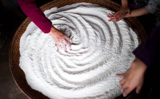 准备就绪,是时候大展身手了。将揉好的艾团捏成大小相当的小面团备用,这个大小就随个人喜好而定了,有大有小!