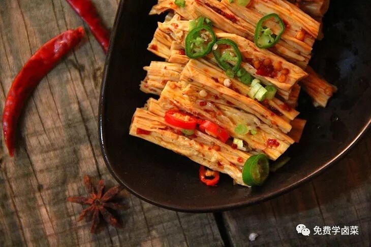 4.放腐竹翻炒两下,生抽十三香鸡精糖,少量的花椒粉放入,小火咕嘟。汤汁收得差不多了撒上葱花蒜末装盘。