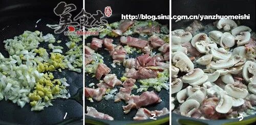 倒入蘑菇片翻炒(蘑菇不要切的太薄,炒制时会出水缩小,切太薄会越炒越小)
