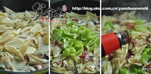 倒入蘑菇时就同时倒入腐竹一起翻炒,蘑菇和腐竹会出水,炒至水收干