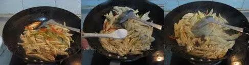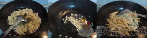 热油爆香姜蒜,下入腐竹同炒