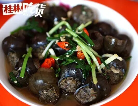 螺蛳酿的肉馅是螺肉和五花肉一起酿制的。
