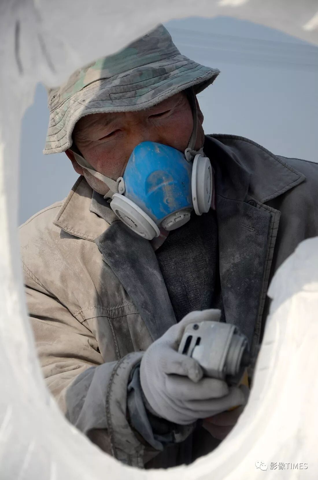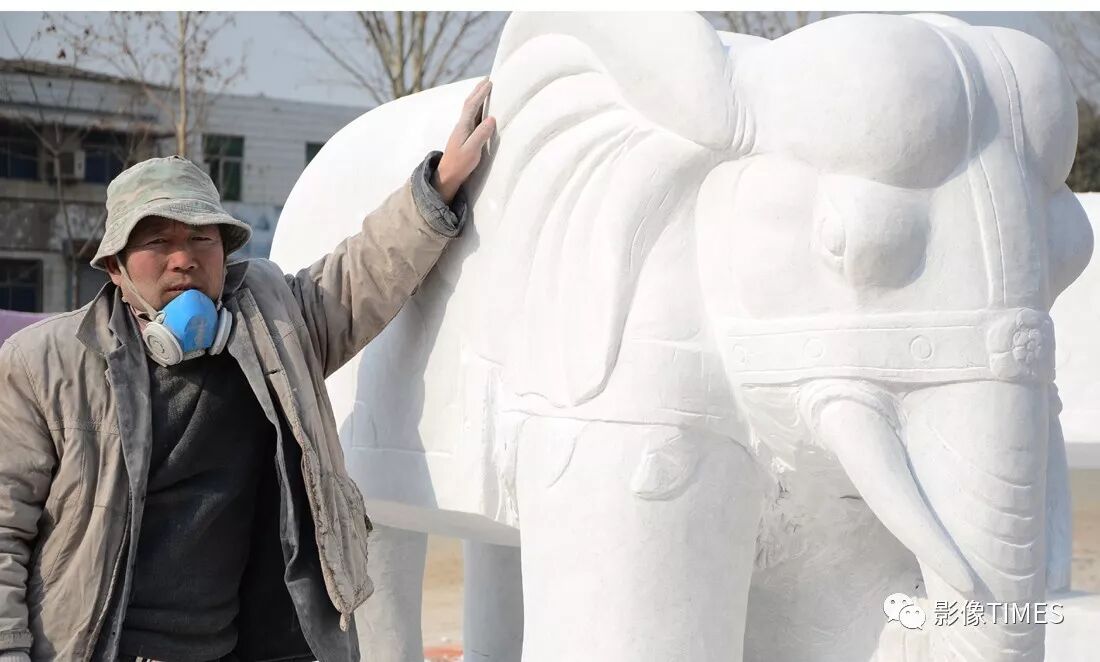 他戴着防尘口罩,顾不得敲打,两手紧攥着一把角磨机,双目囧囧地注视着眼前未完工的一头大理石大象,生怕出一丁点闪失。