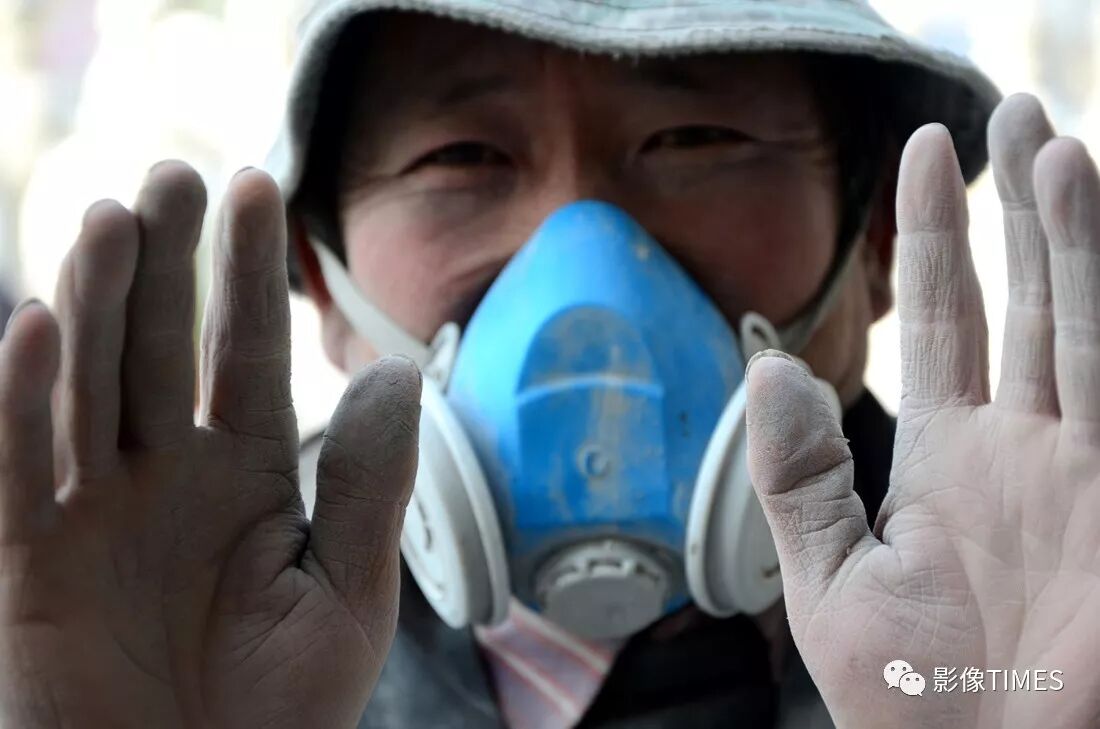 伴随着角磨机“吱吱”的的噪声,飞扬的粉尘很快就覆盖在他的眉毛、头发、脸庞以及衣服上。