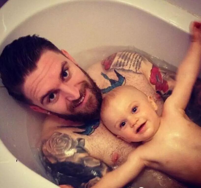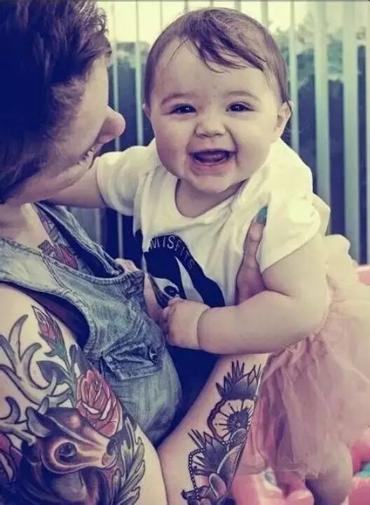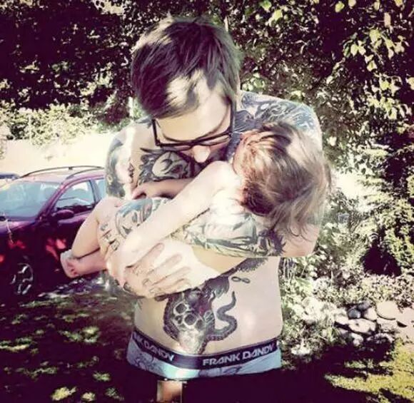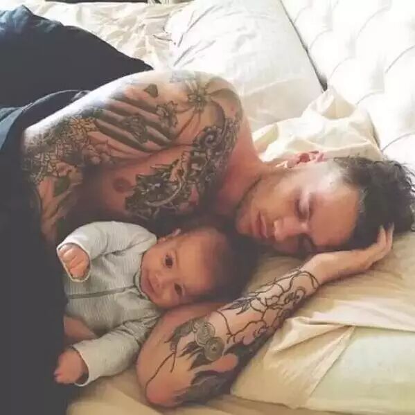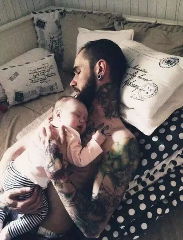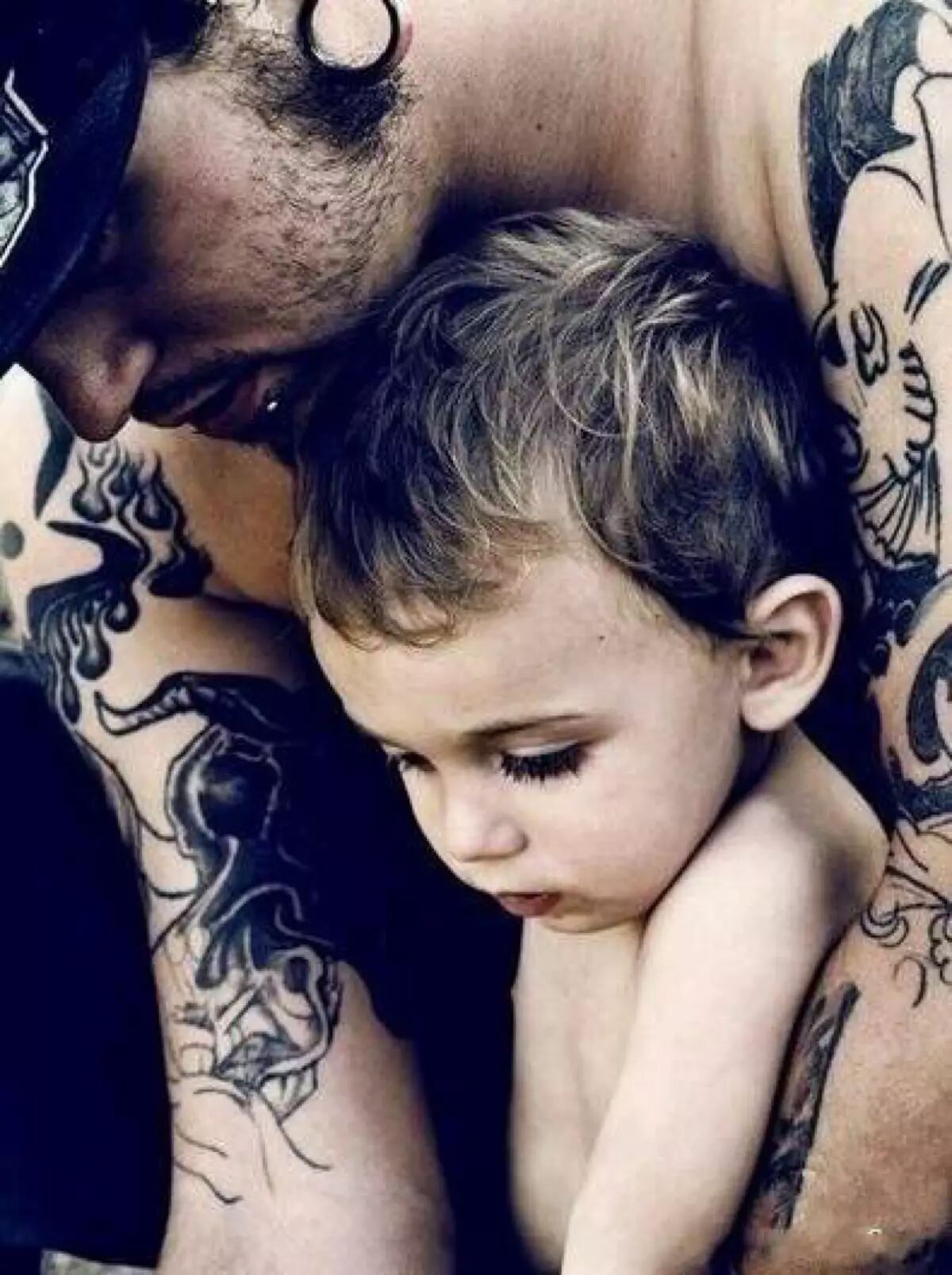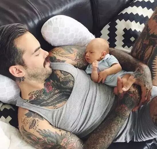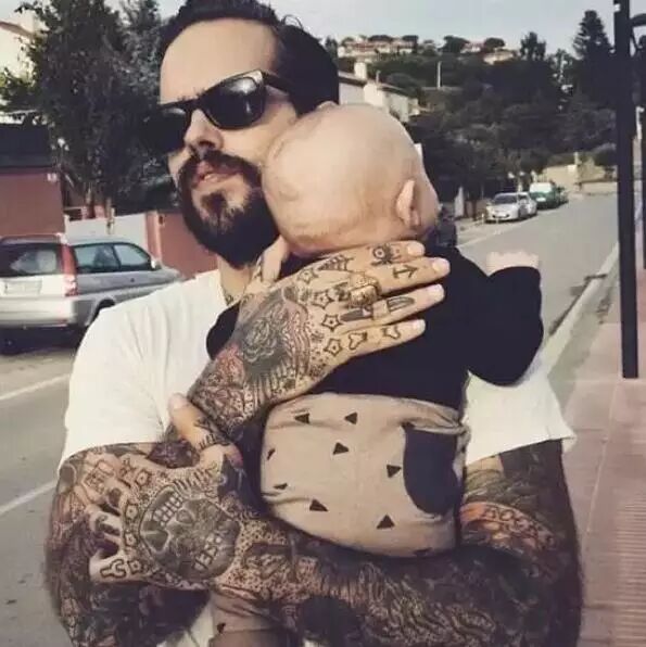 没有什么能比用一只花臂抱着自己的孩子更帅气!