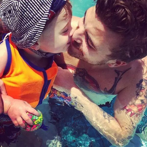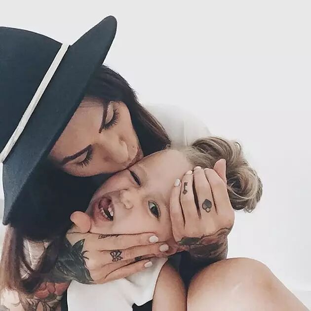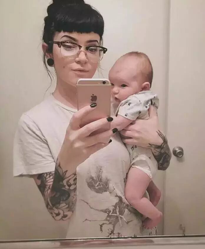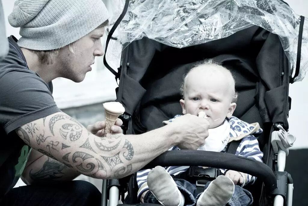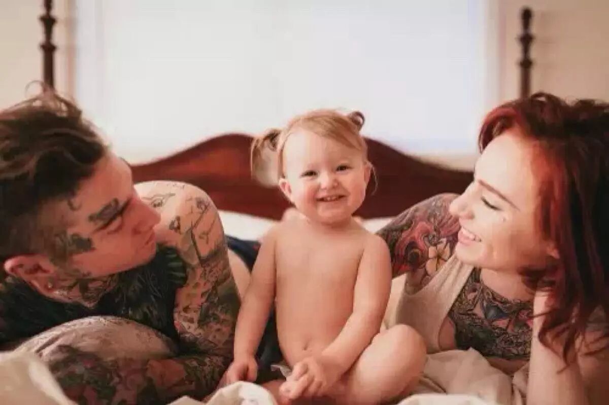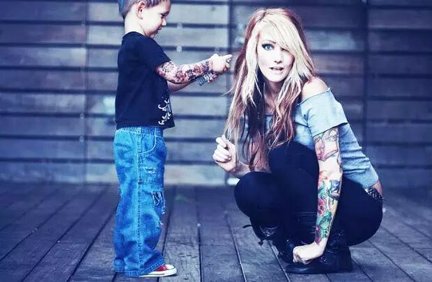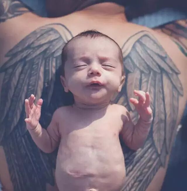 没有什么能比用一只花臂抱着自己的孩子更帅气!