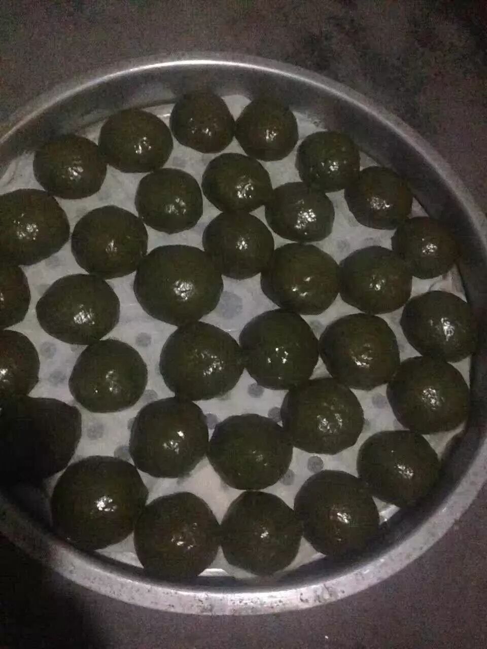 之后将燕子花舂成绿色的泥浆糊,再掺些糯米粉和白砂糖,不停的捏、挤、压,做成一个个圆圆的小小的绿绿的糍粑,最后放入大锅里蒸熟即可食用,这时的燕子花糍粑又香又甜又粘,也可以煎,特别香,别有一番滋味在心头。