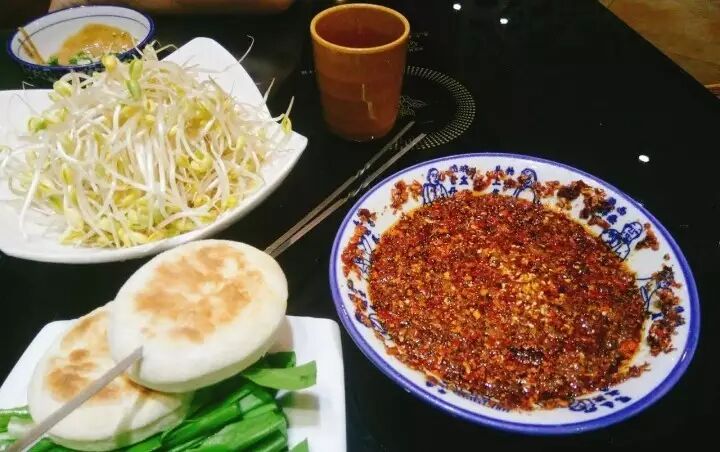 蘸上店家特制的调味料,整个味道超级好吃,麻麻辣辣的很是过瘾!店里的烤馍加辣子也绝对是一道特色~