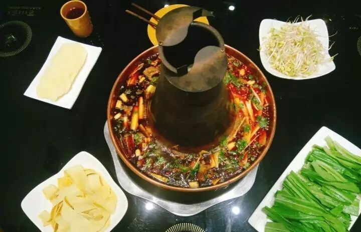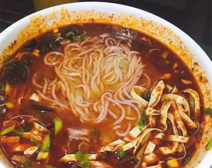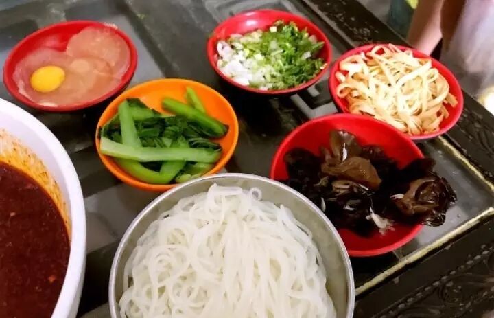 地地道道的苍蝇馆子,食客众多,若干张小桌椅,周内大中午的也能在门口店前排成长龙。端上来的时候就是一碗红汤和若干小菜,需要自己往里添加。