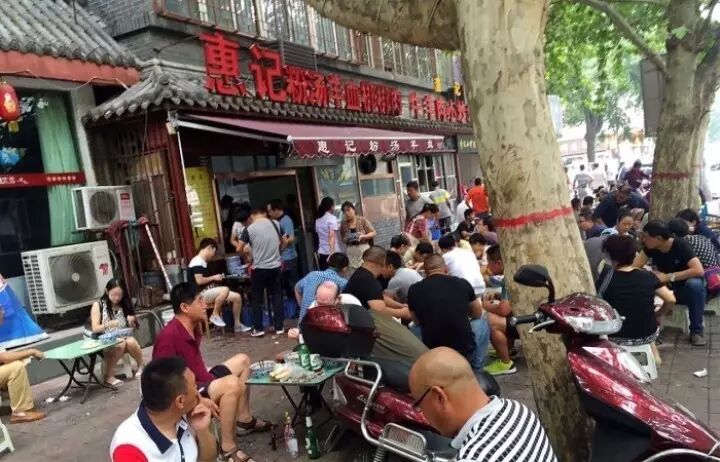 名气很大的惠记粉汤羊血,他家每到饭点,门口小方桌、高低凳子都能坐满了。端上来一碗,先喝一口热汤,咸香麻辣,味美汤鲜。