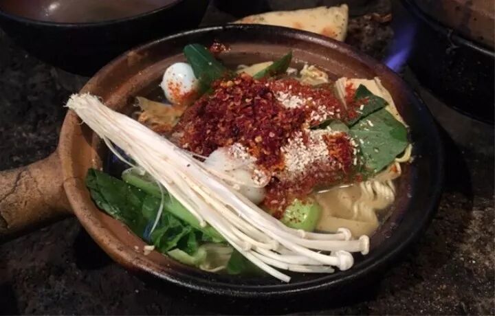 砂锅内容很丰富,牛肉丸子个大肉足,还有豆腐,金针菇,蘑菇,海带,鹌鹑蛋,小青菜,腐竹等等。整个砂锅的味道咸淡合适,非常好吃。