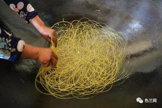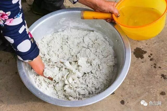 这种荞麦饼因为形似窗花,所以得名“花粑粑”。做花粑粑主要步骤有:和面汤、烧火、撒粑粑、起粑粑,一般要三至四人分工完成,一人负责一个步骤。
