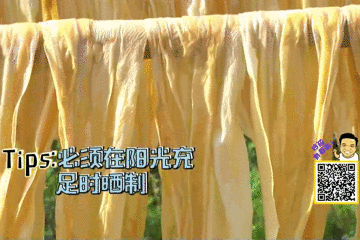 然后再趁好天气,将腐竹晾晒到太阳底下,大约3天时间,腐竹才能晒干食用。