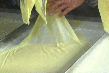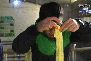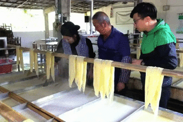 10多分钟后,豆浆再次凝结,春华忍不住要出手了。切割的时候倒是似模似样,但是抓起腐竹的时候就……算你成功啦