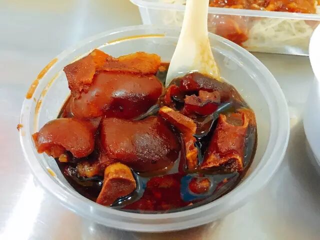 一份老板娘独家配方调制的广式炸酱面(10元,分甜味和辣味,甜味炸酱面很适合小朋友吃);一份酸甜开胃的猪脚姜醋(12元,好吃的秘诀是老板每天去菜市场挑选新鲜猪脚,绝不用冻货,加上坚决避免糖精醋精,吃了不腻);搭配一碗温和的猪肚汤,这一餐太舒畅了,结账31元。