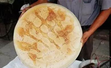 锅盔是蒲城七十多岁的老师傅每日现打的,每天卖完100块为止。